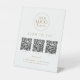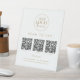 This chic gold business logo QR code scan to pay pedestal sign is perfect for a small business owner! The simple design features classic minimalist gold and white typography with a rustic boho feel. Customisable in any colour. Personalise it with your company logo.