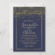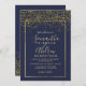 Chic gold confetti navy blue typography wedding invitation