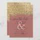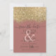 Chic Gold Dusty Rose Glitter Confetti Wedding Save The Date