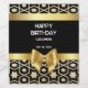 This elegant birthday wine label design features a gold Egypt geometric pattern with a gold bow ribbon on a black background.