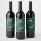 Chic Gold Emerald Green Eucalyptus Wreath Wedding Wine Label