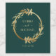 Here's a gorgeous choice for your upcoming wedding reception. This design features a chic faux gold foil eucalyptus greenery wreath encircling the names of the bride and groom followed below by their wedding date on an elegant emerald green background. The text is easily personalised using the template provided. If you have a design question or would like to see this design on another product, please feel free to message me or contact me at jschmidtdesignworks@gmail.com. Design © Judith Schmidt.