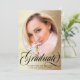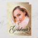 Invite your friends and family to your college graduation celebration in style with this chic photo graduation announcement and party invitation. This modern template design features a photo for you to change to your own framed in faux gold foil. Below your photo it reads "Graduate" in elegant black script typography with your name, college and year to personalise. The back of the card has all your party details to customise accented by a black graduation cap. Designed by Susan Coffey.