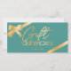 Modern chic faux gold gradient metallic foil bow and gift ribbon logo gift certificate on emerald light green teal. Get ready for the shopping season and Christmas. Perfect gift for anyone! Add your logo