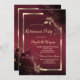 Chic Gold Frame Dark Red Roses Retirement Invitation