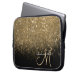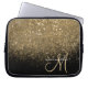 Chic Gold Glitter & Black Monogrammed Laptop Sleeve