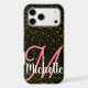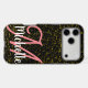 Step into luxury with the Chic Gold Glitter Black Personalized Pink Monogram Case-Mate iPhone Case.