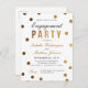 This chic engagement party invitation features elegant faux gold glitter confetti and typography with script fonts on a white background.