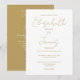 This gold minimalist elegant script wedding invitation can be personalised with your information in chic typography with your wedding website details and your QR code on the reverse. Designed by Thisisnotme©