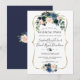 Charming card design featuring gorgeous watercolour pink blush & navy blue flowers bouquets, faux gold frame on white background; on the back midnight blue colour background and a floral bouquet. Use Personalise tool to add your info, make changes. For matching items, please, visit my Navy Blue Blush Floral Collection.