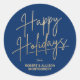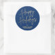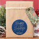 Chic Gold Script Happy Holidays Blue Classic Round Sticker