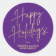 Chic Gold Script Happy Holidays Purple Classic Round Sticker