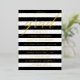 Make a stylish statement with this chic graduation party invitation featuring "Grad Party" in gold foil flowing script over bold black and white horizontal stripes. The fashion-forward design pairs playful stripes with elegant calligraphy for a modern celebration feel. All text is fully customisable, including the graduate's name, school, class year, and event details.
