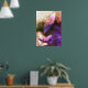 Chic Gold Violet Rose Leaves Abstract Painting Poster