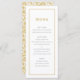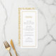 A delicate golden colour scheme creates a chic romantic feel to these vintage meets modern wedding menus. The front features modern typography in a buttoned-up layout while the back pops with ditsy floral blooms. Customise to your own event and pair with the coordinating suite pieces.