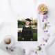 This modern graduation thank you card features a full frame vertical photo, your personalised text in flat white ink, and a raised gold foil typography "Thank You". The look is modern yet elegant. On the inside there is plenty of space for your own personalised text. Simply edit the template with your own info and choose any options.