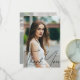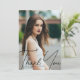 This chic graduation thank you card features sophisticated handwritten black script over a trendy full photo of your graduate. Customise this grad card with a 2nd high school, college, or university photograph on the back below your senior details. The back picture is overlaid with stylish sheer white so you can write your message of thanks.