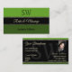 Make a lasting impression with this stylish business card design featuring light and dark green coloured stripes on black with pretty shimmery small gold decor.