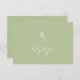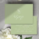 Fresh and lovely with playful elegance. This 2 -sided wedding RSVP response card features a floral framed monogram in white against a green background. The same colours are repeated at the back of the card in a combination of contemporary fonts.