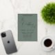 This uniquely simple and elegant wedding invitation template features a flowing handwritten style font contrasted with a classic font. The luxurious invitation reads “the wedding of” in calligraphy on a beautiful sage green background. The reverse side offers a photo option with a soft white overlay, which you can replace or remove as needed.