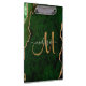 This chic clipboard features an emerald green agate pattern accented with faux gold glitter. Personalise with your monogram and name in modern hand lettered script calligraphy. Designed just for you by ExtremeTees.