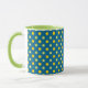 Chic Green Yellow Polka Dots on Blue Ringer Mug