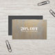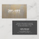 Modern, girly networking discount or coupon card featuring a digital image of distressed silver with satin gold and bold font this business card design style will connect with the elegant customers you’re looking for.