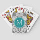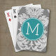 Chic Grey and Teal Damask Pattern Custom Monogram Playing Cards