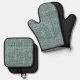 Chic Grey Seafoam Blue Green Boucle Woven Pattern Oven Mitt & Pot Holder Set