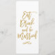 Stylish gold wedding menu featuring modern script fonts and says "Eat, Drink and Be Married" on the back.