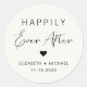 Chic light cream sticker for your wedding invitations, save the dates, engagement parties, thank you cards and other wedding celebrations featuring "Happily Ever After" in simple modern typography and a stylish script, and your names and wedding date.