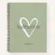 This sage green spiral-bound notebook is personalised with your name in a simple font over a large white heart. Ideal for yourself or a great gift for any occasion. CHOOSE the style of your pages and between HARD and SOFT COVER when ordering. MORE colours, designs and matching items in our store.