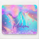 Chic holographic unicorn dripping glitter monogram mouse mat