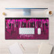 Chic hot pink black glitter drips monogram desk mat