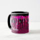 Chic hot pink black drippings glitter monogram Coffee mug. A girly and trendy glittery modern mug. It makes the perfect sweet 16 birthday, wedding, bridal shower, anniversary, baby shower or bachelorette party gift for someone that loves glam luxury and chic styles. Whether for valentines day, Christmas or any occasion in general this cute coffee mug will make a great gift idea for any girl or woman who loves modern sparkly elegance.