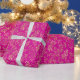 Chic Hot Pink Gold Foliage Pattern Wrapping Paper