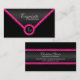 © 2013 Socialite Designs. Chic hot pink lace design business cards. There is a lace circle for your monogram / initials. The graphic is designed to look like a purse. The text is a light grey.