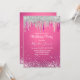 Chic Hot Pink Silver Drippings Glitter Monogram Invitation