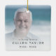 This chic in loving memory grandpa photo memorial ceramic ornament is the perfect modern memorial Christmas tree decoration. The simple design features classic minimalist black typography with a rustic boho feel. This keepsake ornament reads "in loving memory". Personalize your double-sided ornament with a photo of your grandpa, dad, brother, uncle, nephew or friend, your loved one's name and dates.