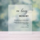 Honour your loved ones who passed on with this elegant "In loving memory" wedding acrylic sign. Elegant, simple, and clean style with delicate calligraphy detail and modern typography. 8" x 10" is simply our default size, you can choose from several size options. Option to keep our message or change it to yours! "IMPORTANT NOTE: sign in a high-quality acrylic sheet with the text printed in black and a frosted faux look behind, providing a clear view of the text in all spaces, and giving you the frosted appeal for a fraction of the cost! Small sizes come with a wood block to stand, bigger sizes need an easel or surface to stand so they won't warp. This same sign design is also available in poster paper print option, which you can find in our collection". Part of our "Minimal, Elegant Wedding and Events Signage" collection with coordinating signage available. Visit the entire collection at: https://www.zazzle.com/collections/119536700311025072