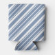 A chic Can Cooler, with an Indigo Blue and White diagonal Ticking Striped pattern. Part of the Posh and Painterly 'Indigo' collection.
