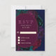 Chic jewel tones floral burgundy navy wedding RSVP card