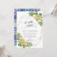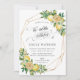 This modern summery birthday party invitation card features a gold geometric frame adorned by watercolor lemons, yellow blooms and green foliage. Designed to match our Lemon Mediterranean wedding collection. Personalise it with your details easily and quickly, simply press the customise it button to further re-arrange and format the style and placement of the text.