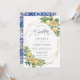 This modern summery wedding invitation card features a gold geometric frame adorned by watercolor lemons, yellow blooms and green foliage. Designed to match our Lemon Mediterranean wedding collection. Personalise it with your details easily and quickly, simply press the customise it button to further re-arrange and format the style and placement of the text.