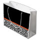 Personalise by adding the name of any girly girl to this chic black and white leopard print large size gift bag with an elegant burnt orange ribbon tied into a sophisticated bow. This stylish animal print design is a flat printed image, and does not contain actual ribbon.
