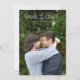 Modern wedding save the date card featuring your event details over your favourite vertical photo with the words "SAVE the DATE" in a combination of an elegant script and modern sans serif font. The back has an additional picture and optional QR code. You may remove the QR code in the design editing tool.