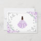 Lilac purple silver and white Quinceanera thank you card. Features brunette girl in ball gown dress, script font, silver butterflies, roses and tiara. Perfect for an elegant princess style glam celebration. Personalize with your own details.