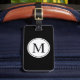 CHIC LUGGAGE TAG_BLACK INITIALS ON WHITE TAG.BLACK BACKGROUND. WHITE TEXT ON BLACK BACK
