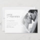 Express your heartfelt gratitude with our Chic Luxury Script Wedding Photo Thank You Card. This elegant card features a timeless black and white design, enhanced by a romantic photo capturing your special day. The handwritten typography adds a personal fellings, making it perfect for thanking your loved ones with style and sophistication. Whether used as double-sided thanks cards or trendy wedding reception table pieces, these cards exude class and modern elegance. Show your appreciation with this minimalist, yet impactful design that conveys your sincere thanks in the most beautiful way.