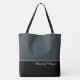This lovely fashion forward tote bag shows the word "Maid of Honour" in white text colour over black with the upper tote bag in custom Steel. Has plenty of room for personalised text. Graphics and text are on both sides of this tote bag. Black handle. Customise further or buy as shown.